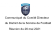 Veuillez trouver ci-dessous le Communiqué du Comité Directeur du District Somme Football suite à la réunion de Bureau du 26/05/21.