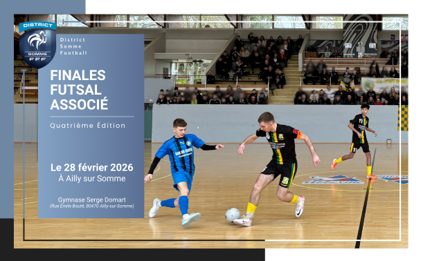 Le District de la Somme de Football a le plaisir de vous inviter à assister aux Finales du Futsal Associé, qui se dérouleront le samedi 28 février 2026, toute la journée.