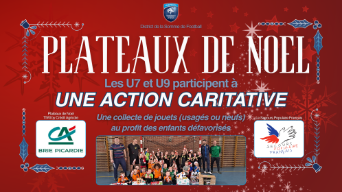 Le 29 novembre 2025 se sont déroulés les Plateaux de Noël U7 et U9 sur tout le département, avec à la clé et en partenariat avec le Secours Populaire Français, une récolte de jouets au profit des enfants défavorisés. Au total, près de 2400 enfants de 5 à 8 ans ont participés a ces plateaux de Noël, sur une trentaines de sites différents.