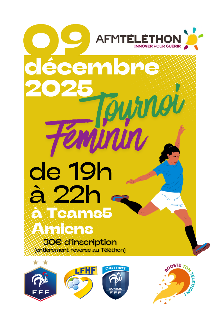 Le District de la Somme de football est heureux de vous annoncer son engagement dans la campagne Téléthon 2025 auprès de l’AFM Téléthon Somme.
